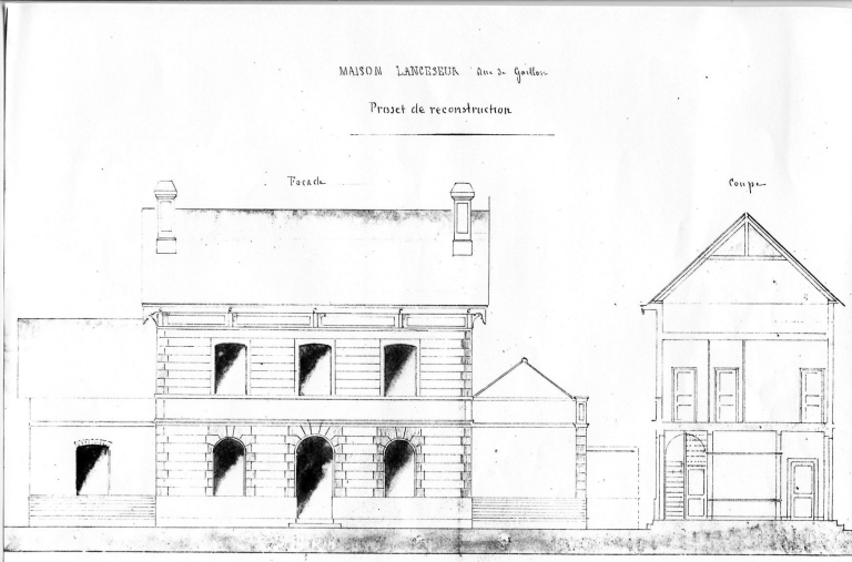 Maison de M. Lancezeur, élévation et coupe, Louis Leray, 1870 (A. C. Rennes)Immatriculation