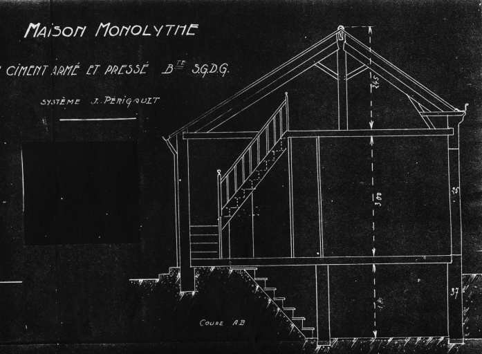 Maison en ciment armé et pressé, système Périgault : coupe (A. C. Rennes)Immatriculation
