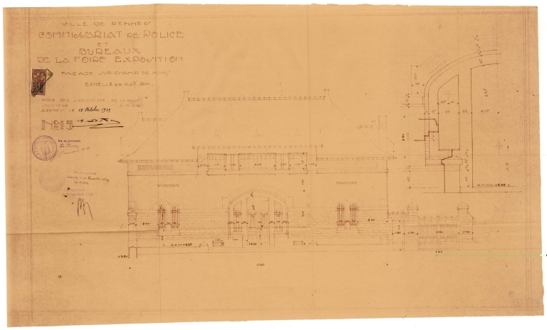 Façade sur le Champ-de-Mars, E. Le Ray, 1929 (A. C. Rennes ; 2 Fi 6283)Immatriculation