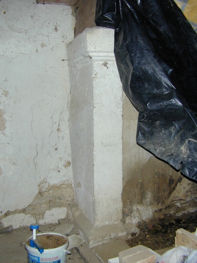 Intérieur, la cheminée du premier étage, détail du piédroit gaucheImmatriculation