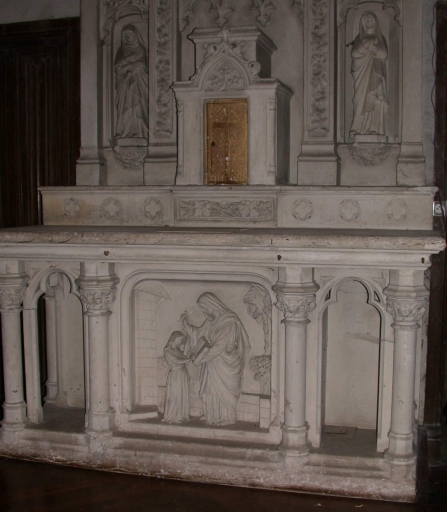 Ensemble de l'autel de la Vierge : autel, tabernacle, retable, gradin d'autel, 2 degrés d'autel,
