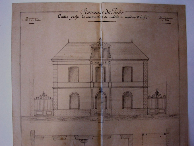 Mairie, école et poste, rue de la Poste (Le Pertre),