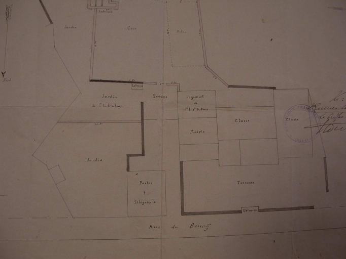 Plan d'ensemble, mairie-école-poste, par Joseph Sinoir en 1899Immatriculation