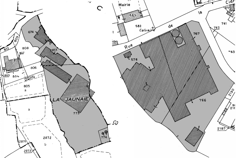 Extrait cadastral : 1994 sections C2 et C3 fusionnées.Immatriculation