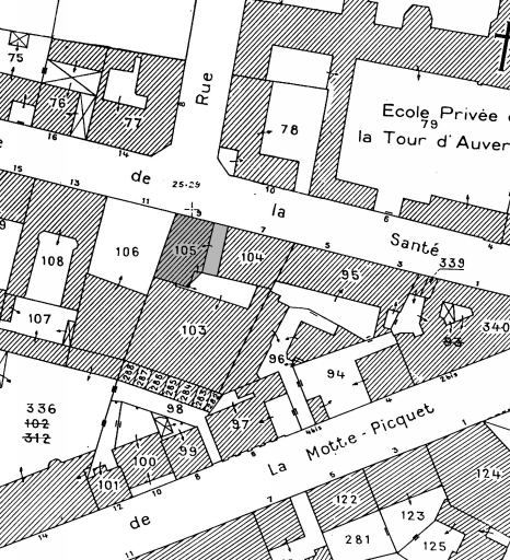 Usine de construction automobile Lepeltier, puis Imprimeries Publicitaires de Bretagne, actuellement atelier de reprographie Pivert, 7, 9, 11 rue de la Santé (Rennes),