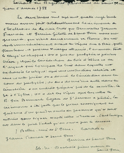 Croix-reliquaire : copie de la relation de l'authentification des reliques en 1788Immatriculation