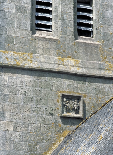 Clocher, face est, détail de la date.Immatriculation