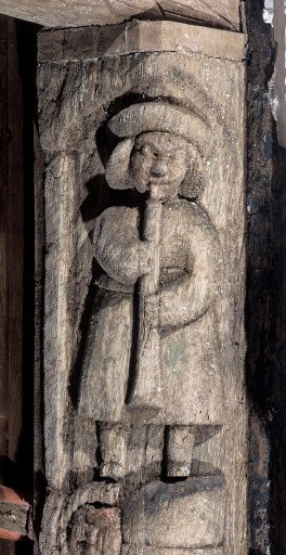 Sablière du transept, joueur de flûte.Immatriculation
