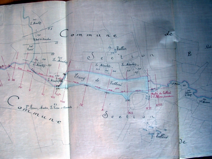 Règlement d'eau du moulin de Tellené, 1887. Plan d'ensemble du site (AD 56, série S 1062)Immatriculation