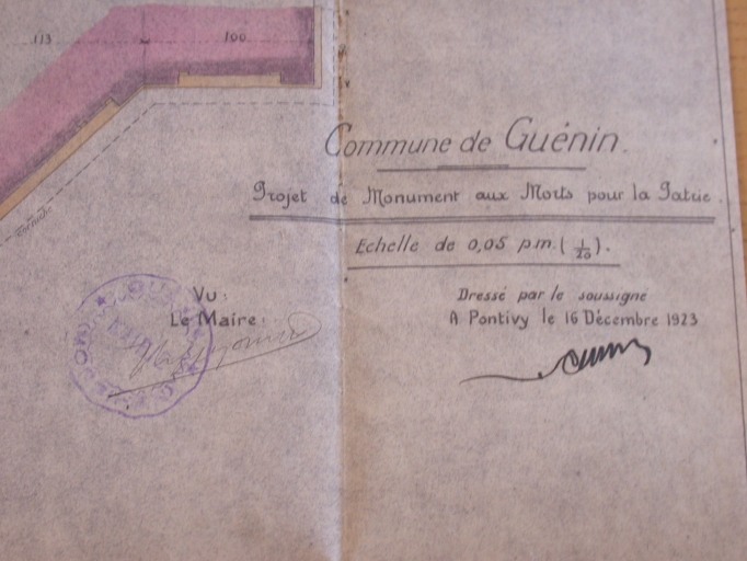 Plan du monument aux morts, détail de la signature (AD morbihan, 2O)Immatriculation