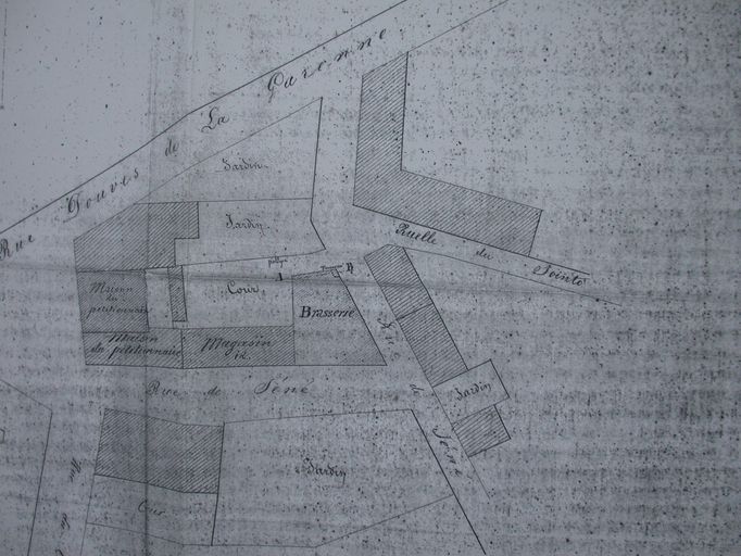 Projet de construction d'une brasserie pour Caro. Plan d'ensemble, détail, 1854. AD Morbihan 5M 525.Immatriculation