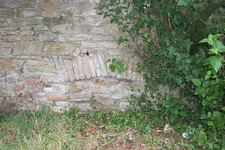 Halle principale, mur nord, détail.Immatriculation