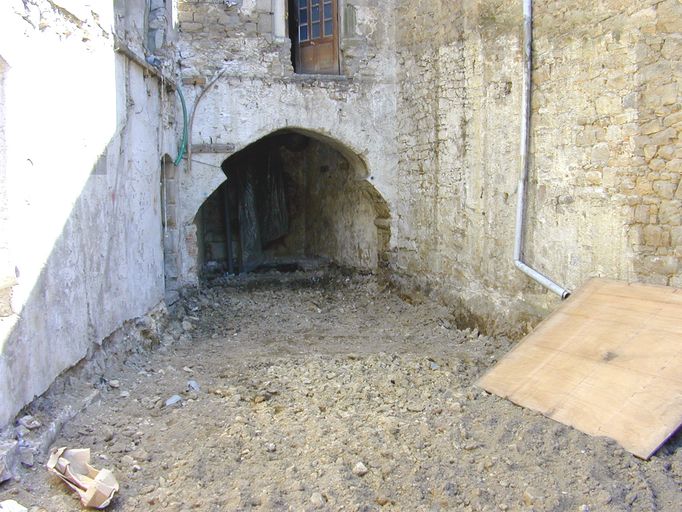 Vue sur le logis sud, partie en retrait façade ouest, détail de l'arcadeImmatriculation