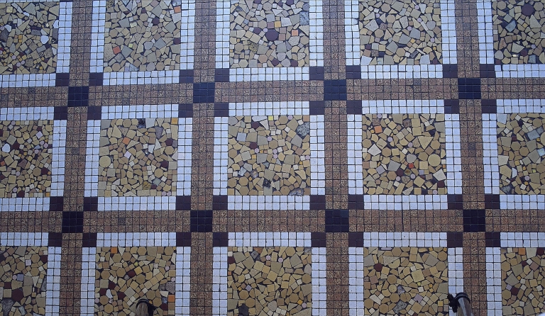 Sol de mosaïque de la salle de guichetsImmatriculation