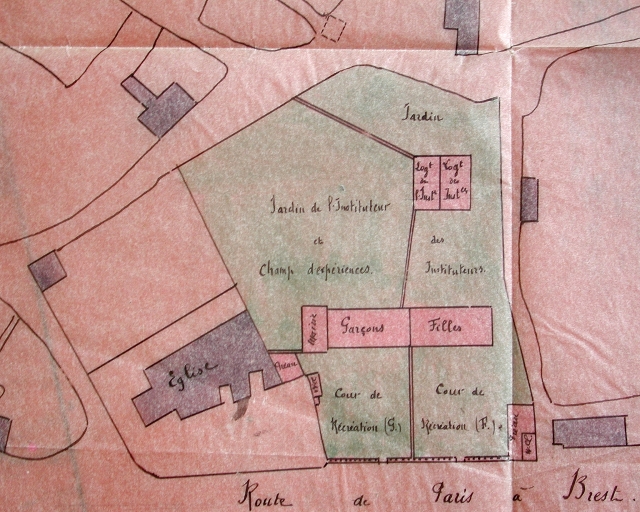 Premier projet de construction du groupe scolaire et de la mairie de Langueux par Victor le Guen, le 30 octobre 1907 (AD 22).Immatriculation