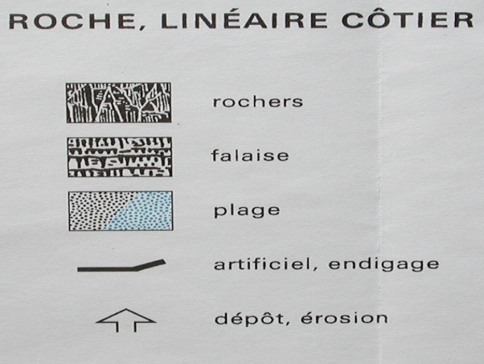 Légendes : roches, linéaire côtier (Carte IPLI, usages du sol, 1977, IGN)Immatriculation