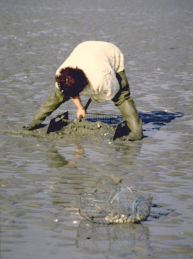 Pêcheur de coques utilisant le râteau et la grêle en même tempsImmatriculation