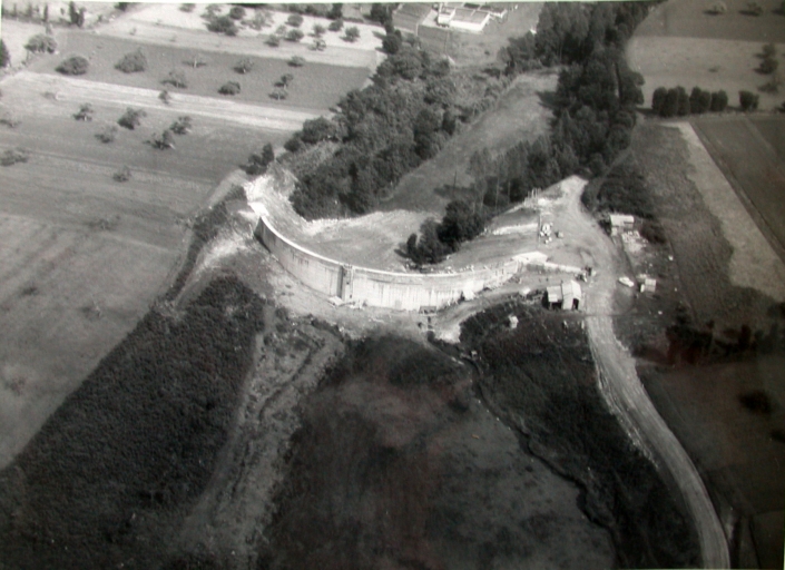 Barrage de Bobital en construction, vue aérienne (1959-1960).Immatriculation