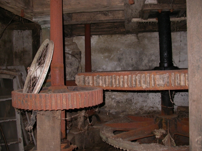 Rouages de transmission, détail des alluchons en bois.Immatriculation