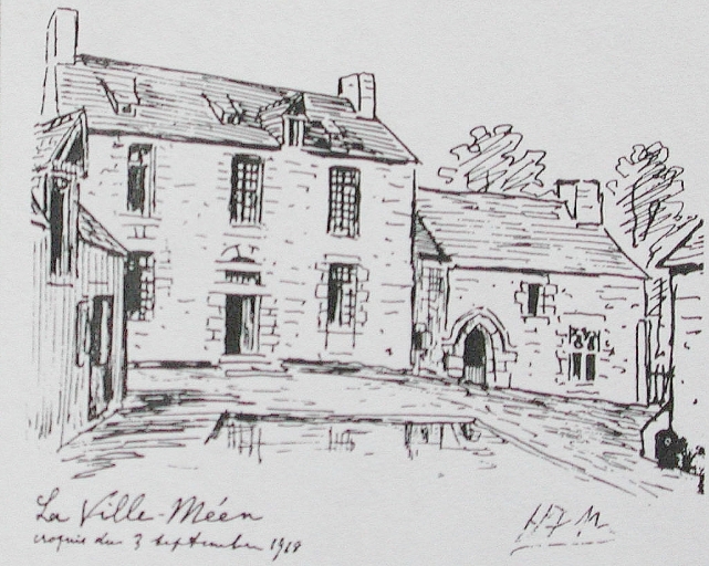 Manoir de la Ville-Méen en 1918 (dessin d'Henri Frotier de la Messelière)Immatriculation