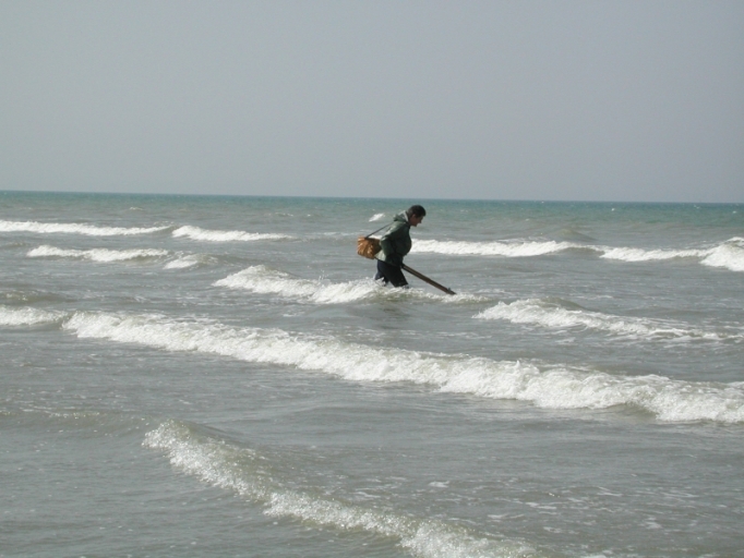 Pêcheur à pied poussant son havenet à crevettes devant luiImmatriculation