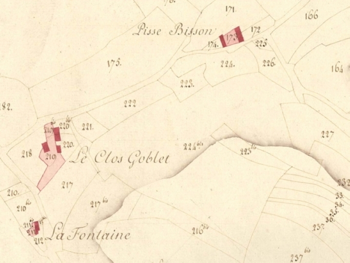 Tracé de l'ancienne digue des plus hautes mers entre les parcelles 175 et 222, de Pissoison au Clos GobletImmatriculation