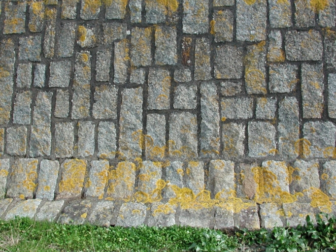 Détails d'agencement des pierres de parement et appareillage (pavés de granite de la rue St-Guillaume de St-Brieuc)Immatriculation