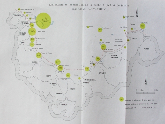 Dans : "Etude pêche à pied de loisirs - SMVM baie de Saint-Brieuc"/ DDE 22, IFREMER, SDAE, DDASS, Saint-Brieuc, 1995.Phototype : carte IGN annotée.