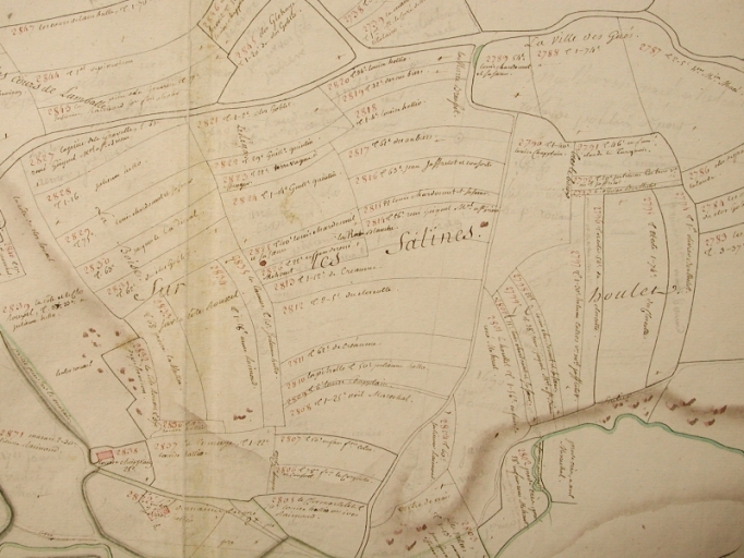 Extrait du Terrier du Penthièvre : "Sur les Salines", 8e feuille.Plan cadastral.
