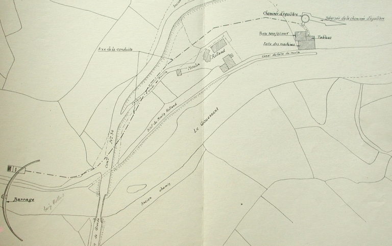 Plan d'ensemble des ouvrages de la chute du Pont-Rolland, 30 mars 1933 (AD 22)Immatriculation