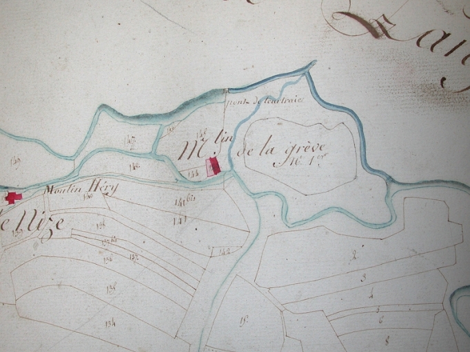 Cadastre 1812 : moulin de la Grève (B 149, moulin Héry (B 191), moulin de Pierre (B 199), pont de la TeurtraieImmatriculation