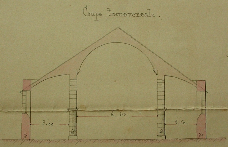 Coupe transversale de l'ancienne église paroissiale, 31 août 1887 (Le Guerrannic, architecte / AD 22).Immatriculation