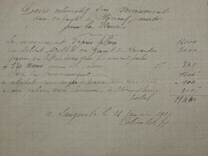 Devis estimatif du sculpteur Colombel (AD 22)Immatriculation