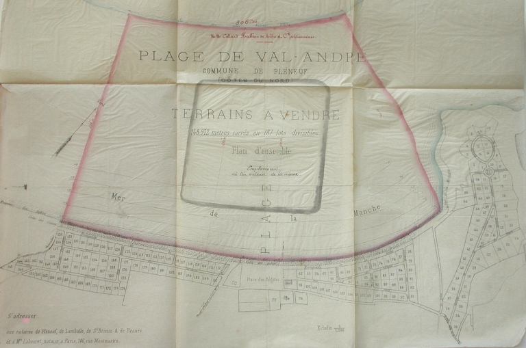 Projet de lotissement du Val-André, plan du 5 août 1882 (Guillomot, ingénieur ordinaire des Ponts-et-Chaussées / AD 22).Immatriculation