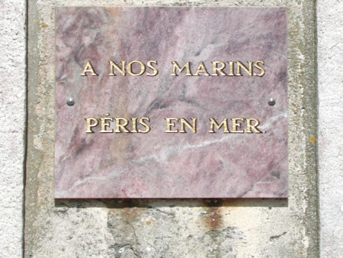 Plaque moderne en marbre rose apposée : Souvenir aux marins disparusImmatriculation