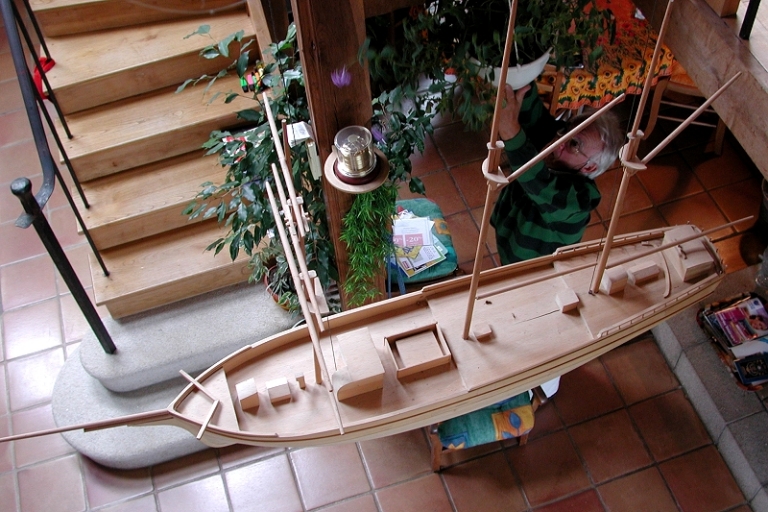 Vue du dessus de la maquette du trois-mâts Terre-Neuvas Père Pierre