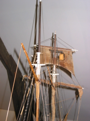 Détail du plan de voilure (hunier) : maquette de la goélette Notre Dame-de-la-GardeImmatriculation