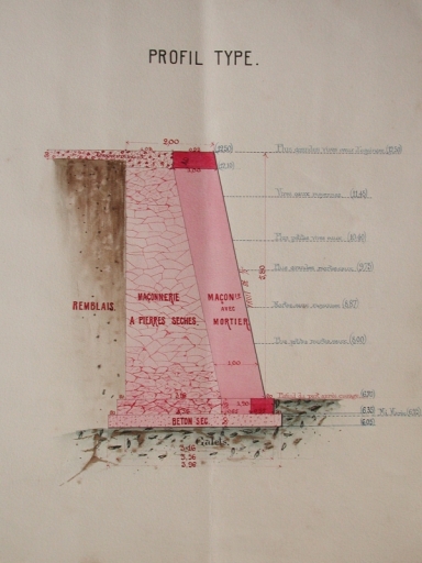 Profil type du nouveau quai à construire à la suite du quai Neuf, après la cale Hamonet en 1884 (AD 22)Immatriculation