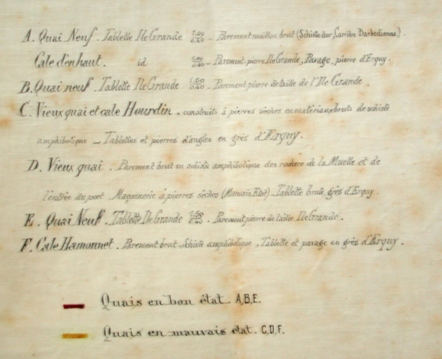 Légende de l'avant-projet de construction d'un quai et de curage du port, 1884 (AD 22)Immatriculation