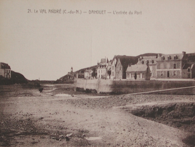 Vue générale du port de Dahouët à marée basse avec les nouveaux quais et le bureau du port au 2e quart du 20e siècle (collection Grimaud)Immatriculation