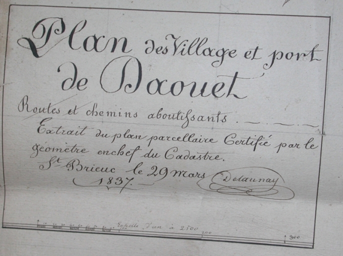 Cartouche de présentation du plan des villages et du port de Dahouët (plan parcellaire, cadastre de 1837)Immatriculation