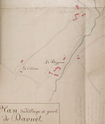 Les marais du Bignon avec le chemin reliant la Côtière au Mûrier : extrait plan cadastral 1837 (AD 22)Immatriculation