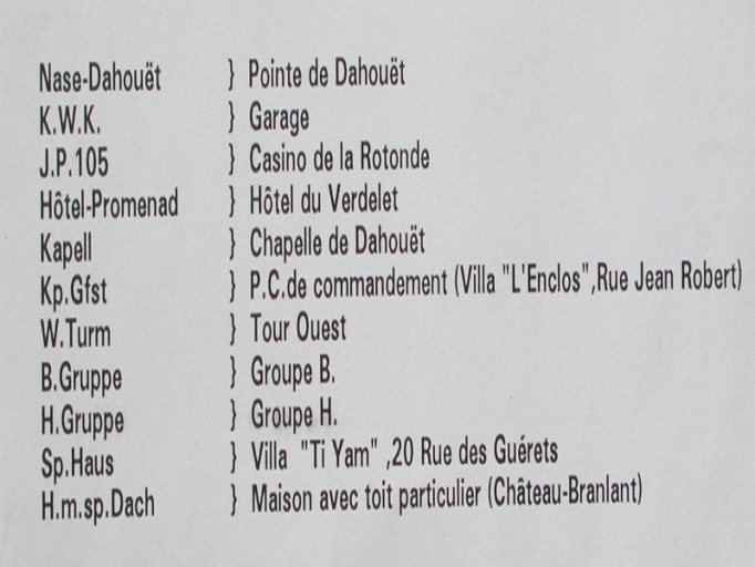 Légendes du plan de tir allemand pour tir au canon depuis le quai Célestin BougléImmatriculation