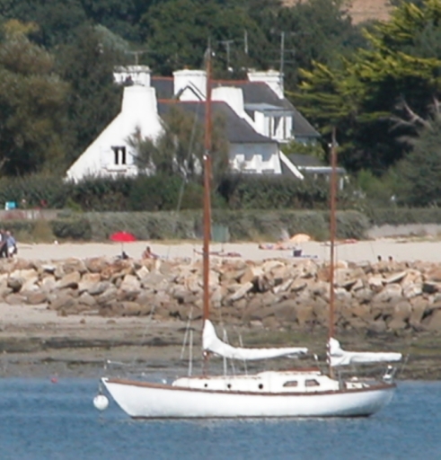 Vue générale du ketch Carusie II (type Cap Nord), en Bretagne sudImmatriculation