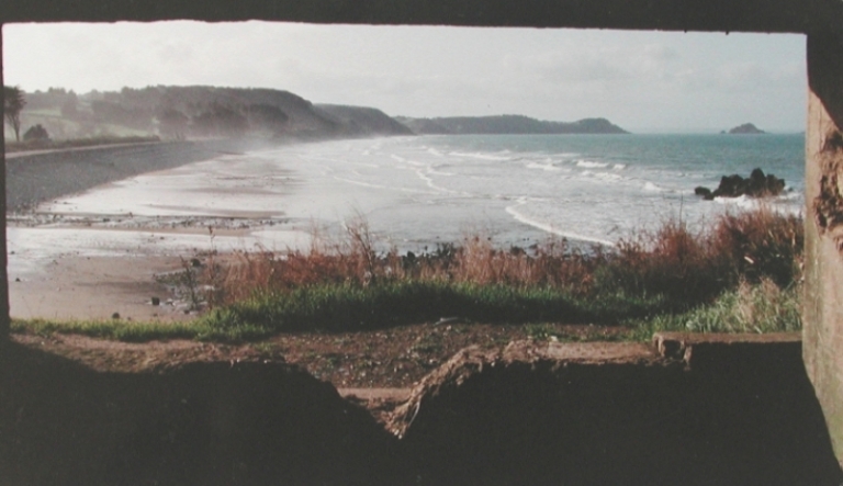 Vue de la plage de Saint-Pabu prise de l'intérieur de la casemateImmatriculation