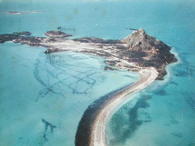 Vue d'avion des parcs ou écluses du Verdelet : traces de pêcherie devant Grande PierreImmatriculation