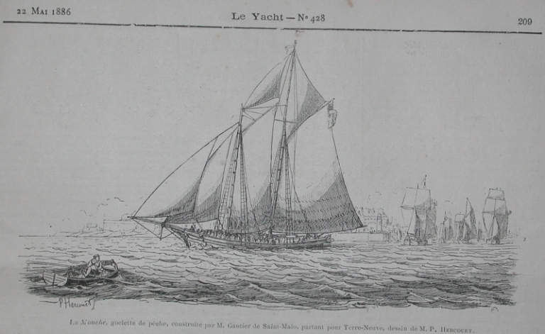 Plan de coque de la goélette de pêche la Mouche, construite par F. Gautier en 1885 (L'Illustration 1886)