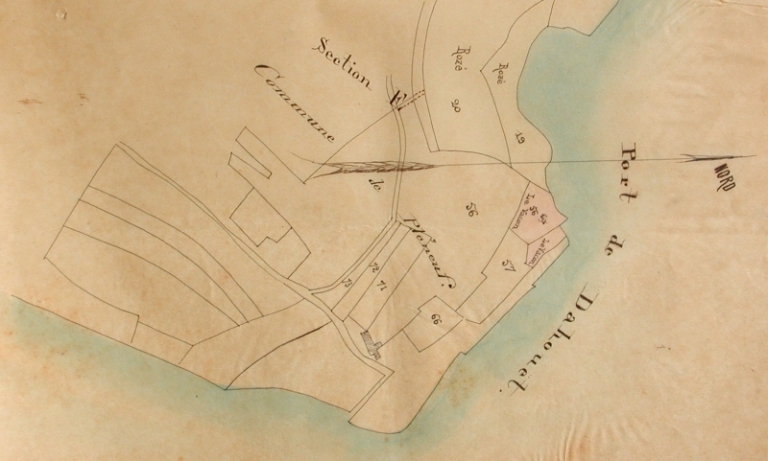 Vue générale de l'emplacement : extrait du cadastre de 1885 (AD 22)Immatriculation