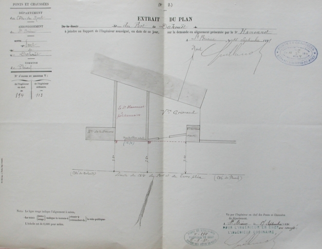 Demande d'agrandissement de la maison de l'armateur Hamonet sur les quais en 1891 (AD 22)Immatriculation