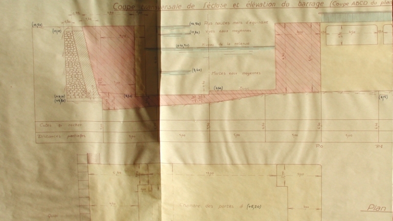 Plan : coupe transversale de l'écluse et du barrage en projet, 1931 ( AD 22)Immatriculation